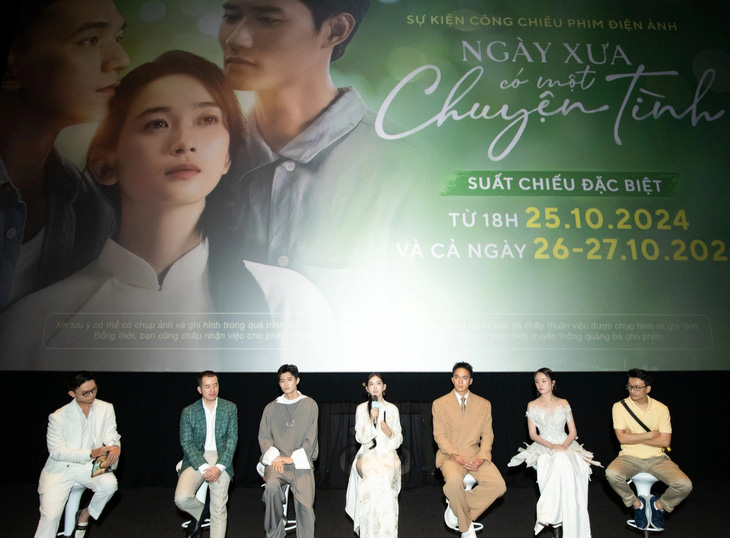 Đoàn phim Ngày xưa có một chuyện tình gặp gỡ báo chí sau suất chiếu đầu tiên Nhà báo Lê Hồng Lâm đã viết trên Facebook cá nhân của anh sau khi xem suất chiếu đầu tiên ngoài rạp của Ngày xưa có một chuyện tình. Anh xúc động chia sẻ: "Nhịp nửa đầu phim có cảm giác hơi dàn trải, nhưng có thể đó là chủ ý của đạo diễn để "gieo" những hạt mầm đợi ngày gặt hái. Mọi thứ diễn ra từ tốn và chậm rãi, đủ để những hạt mầm nảy nở trong câu chuyện tình yêu và tình bạn của bộ ba Vinh-Phúc-Miền. Làng quê miền Trung lên phim quá nên thơ và được thể hiện qua cảnh sắc thay đổi theo thời gian. Tôi rất thích chi tiết bộ ba đi xem buổi chiếu phim công cộng Vị đắng tình yêu. Hơn 30 năm trước, bộ phim sốt một thời này cũng kể một câu chuyện tình tay ba nhiều nước mắt và sự cao thượng trong tình yêu. Đó cũng là một cú "gieo" đầy ẩn ý. Ở nửa sau, khi nhịp điệu đã lên đến cao trào, đạo diễn bắt đầu "gặt" một mùa màng bội thu. Tôi rất sợ phim sẽ bị sến, nhưng ơn giời, cả ba nhân vật đều rơi nước mắt, nhưng đều là những giọt nước mắt được rơi đúng lúc đúng chỗ nên tạo được cảm xúc cho khán giả. "Ngày xưa có một chuyện tình" kể về một câu chuyện tình, rõ rồi. Nhưng tôi thích cả tình bạn và tình người trong bộ phim này. Một bộ phim dịu dàng, dung dị nhưng đủ gây cảm động và thương nhớ một thời chưa xa của chúng ta". Chiều 22-10, tại TP.HCM diễn ra buổi họp báo công chiếu phim Ngày xưa có một chuyện tình. Đạo diễn Trịnh Đình Lê Minh, biên kịch Nhi Bùi và dàn diễn viên trả lời nhiều câu hỏi liên quan phim và mỗi người. Ngày xưa có một chuyện tình khai thác từ ba góc nhìn Về cơ duyên chuyển thể Ngày xưa có một chuyện tình, đạo diễn Trịnh Đình Lê Minh cho biết câu chuyện tình yêu không bao giờ cũ, luôn mang giá trị bền vững, cho dù ở thập niên 1990, 2000 hay bây giờ. Điểm đặc biệt của phim là tình bạn, chính yếu tố này giúp các nhân vật đưa ra quyết định quan trọng trong những thời khắc mấu chốt. Đây là điểm đặc trưng của Ngày xưa có một chuyện tình.