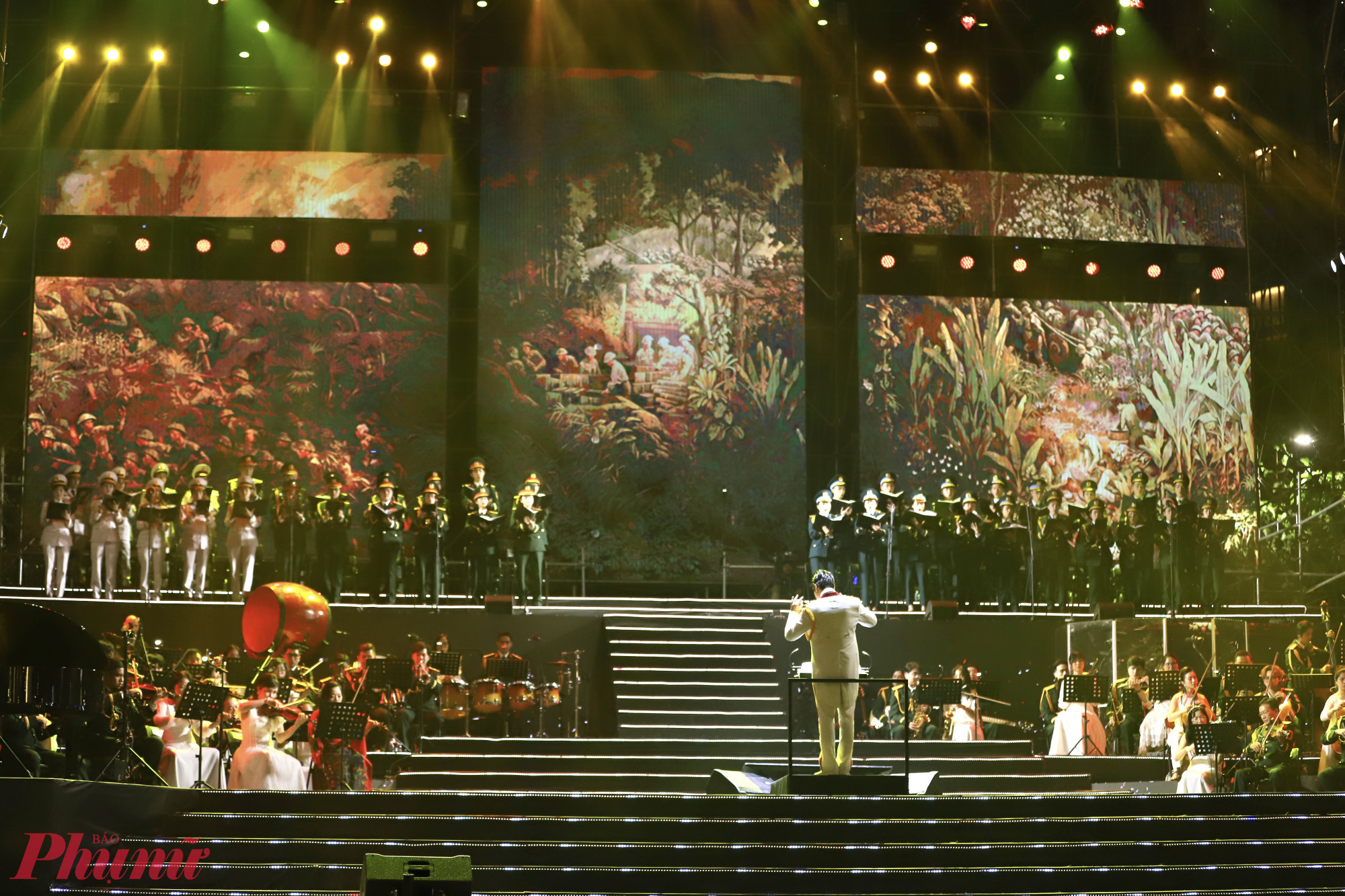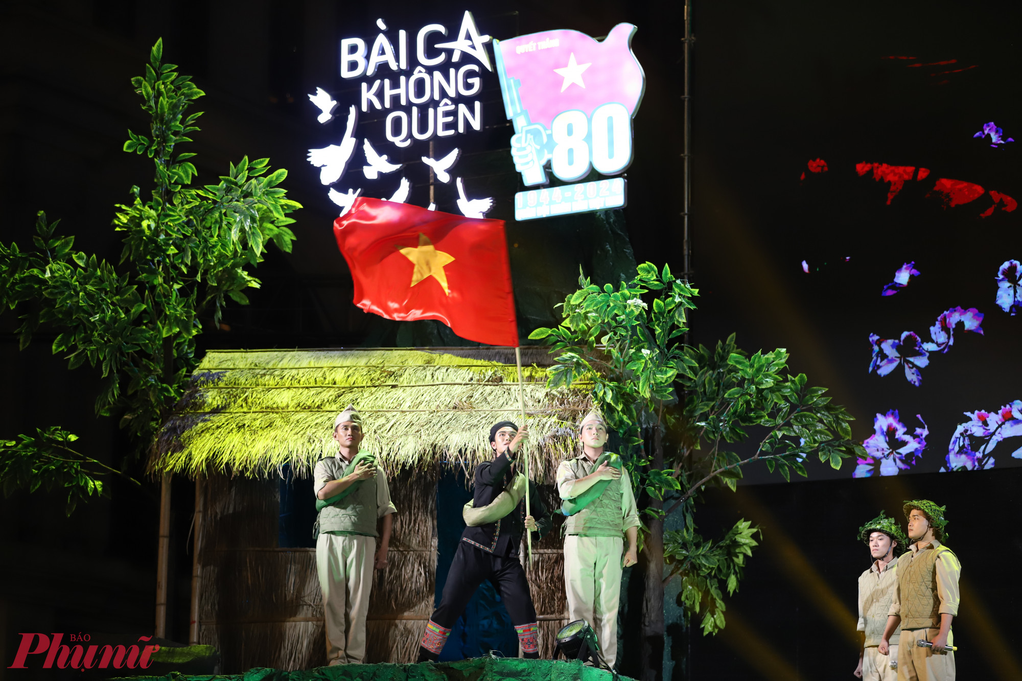 Phan Mạnh Quỳnh trong tiết mục đầy cảm xúc Đưa anh về. Ca sĩ Cẩm Vân đã chạm đến trái tim khán giả qua ca khúc “Huyền Thoại Mẹ”, còn Phan Mạnh Quỳnh trong tiết mục đầy cảm xúc “Đưa Anh Về”. Ca sĩ Đức Tuấn tỏa sáng với loạt ca khúc như “Tự Nguyện”, “Linh Thiêng Việt Nam”. Màn song ca đầy cảm xúc giữa Hồ Trung Dũng với NSƯT Phương Anh trong “Bài Ca Không Quên”. Chương trình cũng quy tụ các nghệ sĩ trẻ nổi bật như Hoàng Hồng Ngọc với bài hát “Yêu Anh Người Lính”, kết hợp cùng nhảy nghệ thuật hip-hop, mang đến sự giao thoa giữa truyền thống và hiện đại. Phần kết chương trình, liên khúc “Tiến Bước Dưới Quân Kỳ” và “Vì Nhân Dân Quên Mình”, đã đưa các nghệ sĩ, diễn viên và dàn nhạc cùng hòa mình, khép lại một đêm diễn đầy cảm xúc. Nhạc trưởng Lê Ha My điều hành tại chương trình. Ca sĩ Đức Tuấn tỏa sáng với loạt ca khúc như Tự nguyện, Linh thiêng Việt Nam. Các giai điệu quen thuộc của những ca khúc cách mạng, qua bàn tay tài hoa của những nhạc công và nghệ sĩ, đã được chuyển soạn một cách đầy sáng tạo cho piano, violon, cello, bộ gõ, dàn kèn đồng và dàn hợp xướng với sự tham gia của hơn 100 nghệ sĩ. Âm nhạc trở thành cầu nối mạnh mẽ, tái hiện tinh thần "Quyết tử cho Tổ quốc quyết sinh" của những chiến sĩ Vệ Quốc quân, Vệ Quốc đoàn năm xưa. Từng nốt nhạc như khắc họa hình ảnh kiên cường của những người đã cống hiến tuổi xuân và máu xương cho nền độc lập, tự do của Tổ quốc. Những âm thanh vang vọng từ sân khấu chạm đến trái tim người nghe, tạo nên sợi dây liên kết sâu sắc giữa quá khứ và hiện tại, khơi dậy trong lòng mỗi người niềm tự hào và trách nhiệm với quê hương, đất nước.