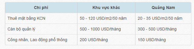Ngoài những mở cửa về chính sách, lãnh đạo tỉnh này còn triển khai những sáng kiến cụ thể như một cửa liên thông, tiếp doanh nghiệp định kỳ, mở cổng thông tin điện tử hỗ trợ doanh nghiệp, chương trình cà phê doanh nhân, thành lập tổ công tác hỗ trợ dự án đầu tư, mở các kênh đối thoại hay sự ra đời của trung tâm hành chính công IPA. Mở rộng cửa chào doanh nghiệp Lợi thế của Quảng Nam là tỉnh nằm ở trung tâm của Việt Nam, thuộc vùng kinh tế trọng điểm miền Trung, có địa lý vô cùng thuận lợi để kết nối các địa phương khác của Việt Nam và trên thế giới. Do điều kiện tự nhiên giáp biển nên khu kinh tế mở Chu Lai có sức hấp dẫn và thuận tiện trong giao thương. Tuy nhiên để thu hút được doanh nghiệp vào đầu tư, Quảng Nam còn ban hành những cơ chế đặc thù. Về thuế thu nhập doanh nghiệp, thuế nhập khẩu các doanh nghiệp đầu tư vào khu kinh tế mở Chu Lai và 15/18 huyện thuộc Danh mục địa bàn ưu đãi đầu tư theo quy định Chính phủ. Ô tô Trường Hải chính là trường hợp điển hình. Nhờ được hưởng ưu đãi về thuế nên công ty này có nguồn lực tài chính để tái đầu tư, phát triển. Về hạ tầng, đơn giá cho thuê đất có kết cấu hạ tầng trong các khu công nghiệp bằng 1/3 so với các khu vực khác; tùy lĩnh vực đầu tư, dự án có thể được miễn tiền thuê đất chưa có kết cấu trong thời gian 11 năm, 15 năm hoặc suốt thời hạn triển khai dự án. Chi phí nhân công bằng 2/3 các khu vực khác.