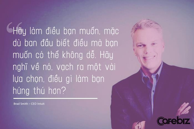 “Khi đang ở trên đỉnh cao, chúng tôi không đợi những tác động bên ngoài ập đến. Bên trong, luôn có một sự thúc đẩy rằng chúng tôi phải cải thiện dịch vụ, mang đến thêm lợi ích và tính năng cho người dùng trước khi chúng tôi buộc phải làm điều đó. Chúng tôi chủ động hạ giá thành và tăng giá trị trước khi buộc phải làm thế. Và chúng tôi “sáng tạo” trước khi buộc phải làm vậy. Tất cả điều này đến từ định hướng tập trung vào khách hàng hơn là đáp trả đối thủ” (Jeff Bezos, viết trong thư gửi cổ đông năm 2012). Một trong những sai lầm lớn nhất mà nhiều công ty nhỏ hay startup mắc phải là cố gắng “dự đoán xu hướng hiện tại” và tự điều chỉnh mô hình kinh doanh. Theo quan điểm của Jeff Bezos, đừng cố gắng chạy theo xu hướng mà hãy nhìn từ quan điểm khách hàng, bạn sẽ thấy những gì cần làm. Khi người khác tăng giá, Amazon tìm cách giảm giá thành. Khi người khác hài lòng với những gì đang cố, Amazon luôn hướng đến sự thay đổi vì mục tiêu tốt hơn. Tập trung vào khách hàng và ít để tâm đến những gì đối thủ đang làm là cách Amazon luôn đi trước đối thủ một bước. Brad Smith – CEO Intuit