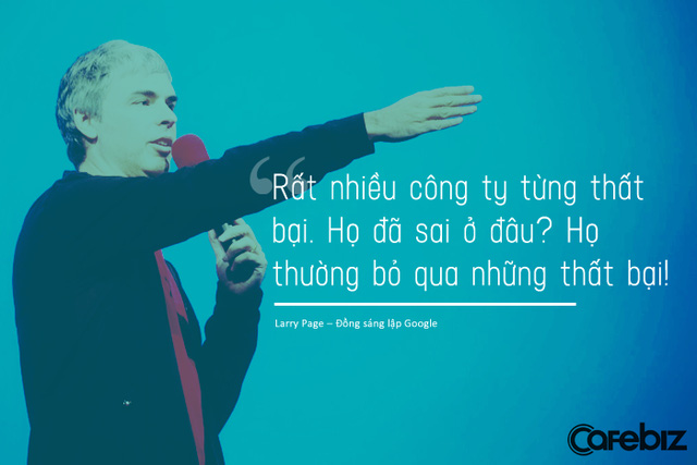 “Hãy dũng cảm để liều lĩnh và phát triển bằng cách học hỏi từ cả thành công cũng như thất bại. Câu nói yêu thích của tôi đến từ Winston Churchill rằng ‘thành công là khả năng đi từ thất bại này đến thất bại khác mà không đánh mất sự nhiệt huyết’. Hãy đối mặt với nó bởi những bài học tuyệt nhất chúng tôi có được luôn thường đến từ những dự án thất bại. Đừng trốn tránh trải nghiệm này – hãy tóm chặt lấy nó!” (Brad Smith, chia sẻ trong bài viết How to Succeed in a Bad Economy). Đừng để thất bại làm bạn nản lòng bởi chiến thắng mặc dù rất tuyệt vời nhưng thất bại lại mang đến nhiều bài học hơn. Larry Page – Đồng sáng lập Google