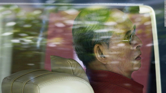 Nhà vua trong xe oto rời bệnh viện Siriraj vào năm 2015.