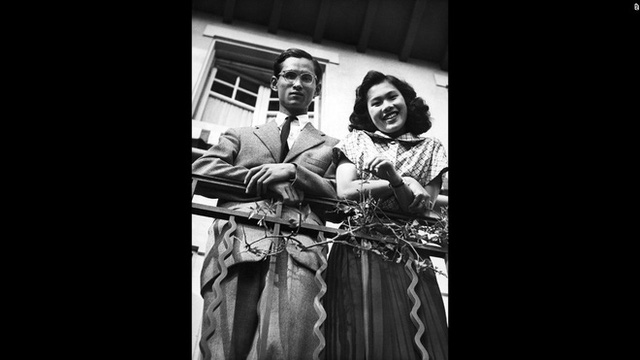Vua Bhumibol và hoàng hậu tương lai, công chúa Sikirit Kityakara tại Lausanne năm 1949. Vua và hoàng hậu thành hôn tại cung điện Srapathum ở Bangkok, Thái Lan.