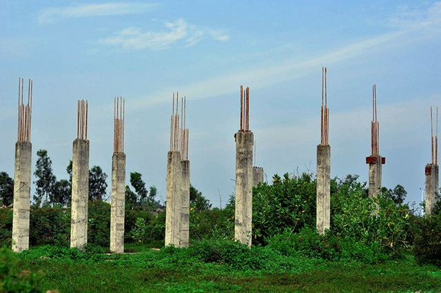Dự án Metropolitan được quy hoạch trên diện tích 210.000 m2 bên quốc lộ 51B tại TP Vũng Tàu. Đây cũng là công trình khiến nhiều cán bộ TP này bị Bộ Công an khởi tố. Dự án Trung tâm thương mại và nhà ở cao cấp Metropolitan do Công ty địa ốc An Khang làm chủ đầu tư được quy hoạch trên diện tích 210.000 m2 tại phường 11 (TP Vũng Tàu, Bà Rịa - Vũng Tàu). Dự án nằm bên quốc lộ 51B có tổng vốn đầu tư 8.000 tỷ đồng và dự kiến lên mức 13.000 tỷ đồng. Hiện nay, các hạng mục công trình đang bị đóng băng và xuống cấp do lãnh đạo công ty bị khởi tố về hành vi lừa đảo. Trên mảnh đất rộng chỉ có duy nhất tòa nhà 3 tầng thi công dở và căn nhà nhỏ làm văn phòng công ty. Từ năm 2008 đến 2010, khu vực này là đất nông nghiệp được Công ty An Khang mua lại sau đó nhờ cán bộ TP Vũng Tàu giải quyết các thủ tục đất đai. Tuy nhiên, các hồ sơ xin chuyển mục đích sử dụng đất của Công ty An Khang không hợp lệ vì không được công chứng, người nộp hồ sơ không phải chủ sử dụng đất, không được ủy quyền, đơn xin chuyển mục đích không được chính quyền địa phương xác nhận... Thủ tục không đầy đủ về pháp lý nhưng cán bộ Phòng TN-MT TP Vũng Tàu vẫn tham mưu lãnh đạo UBND TP Vũng Tàu ký duyệt dẫn đến sai phạm nghiêm trọng. Trong ảnh: Cửa kính của công trình nhà ở trong dự án Metropolitan vỡ vụn. Cuối năm 2010, đầu 2011, ông Phan Hòa Bình giữ chức Chủ tịch UBND TP Vũng Tàu và ông Trương Văn Trí đương nhiệm Phó chủ tịch UBND TP Vũng Tàu đã ký hàng loạt quyết định chuyển mục đích sử dụng đất trong Metropolitan. Công an xác định, việc làm của các cán bộ này gây thiệt hại gần 20 tỷ đồng. Ngoài ra, quy hoạch dự án được phê duyệt không đúng tỷ lệ đã dẫn đến chồng lấn lên đất ở của người dân và đất công Nhà nước. Cuối tháng 6/2013, Công ty địa ốc An Khang ký hợp đồng huy động vốn với 300 người (tổng số tiền trên 400 tỷ đồng). Đến cuối năm, công ty này bị khách hàng tố cáo về hành vi lừa đảo. Trong ảnh: Trụ bê tông, cốt thép của một công trình bị bỏ ngỏ trong khu vực quy hoạch. Phần đất nền cây bụi mọc um tùm.